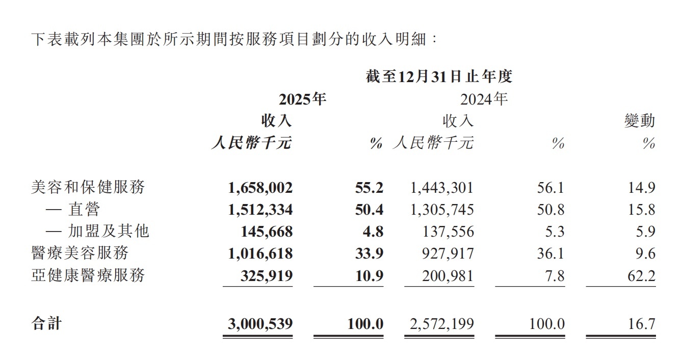 从业务结构看,公司形成美容和保健服务、医疗美容服务、亚健康医疗服务三大板块,其中美容和保健服务收入16.58亿元,同比增长14.9%,为基石业务;消费医疗板块合计收入13.40亿元,同比增长18.9%,占总收入比重44.8%,同比提升0.9个百分点,成为增长核心动力。
